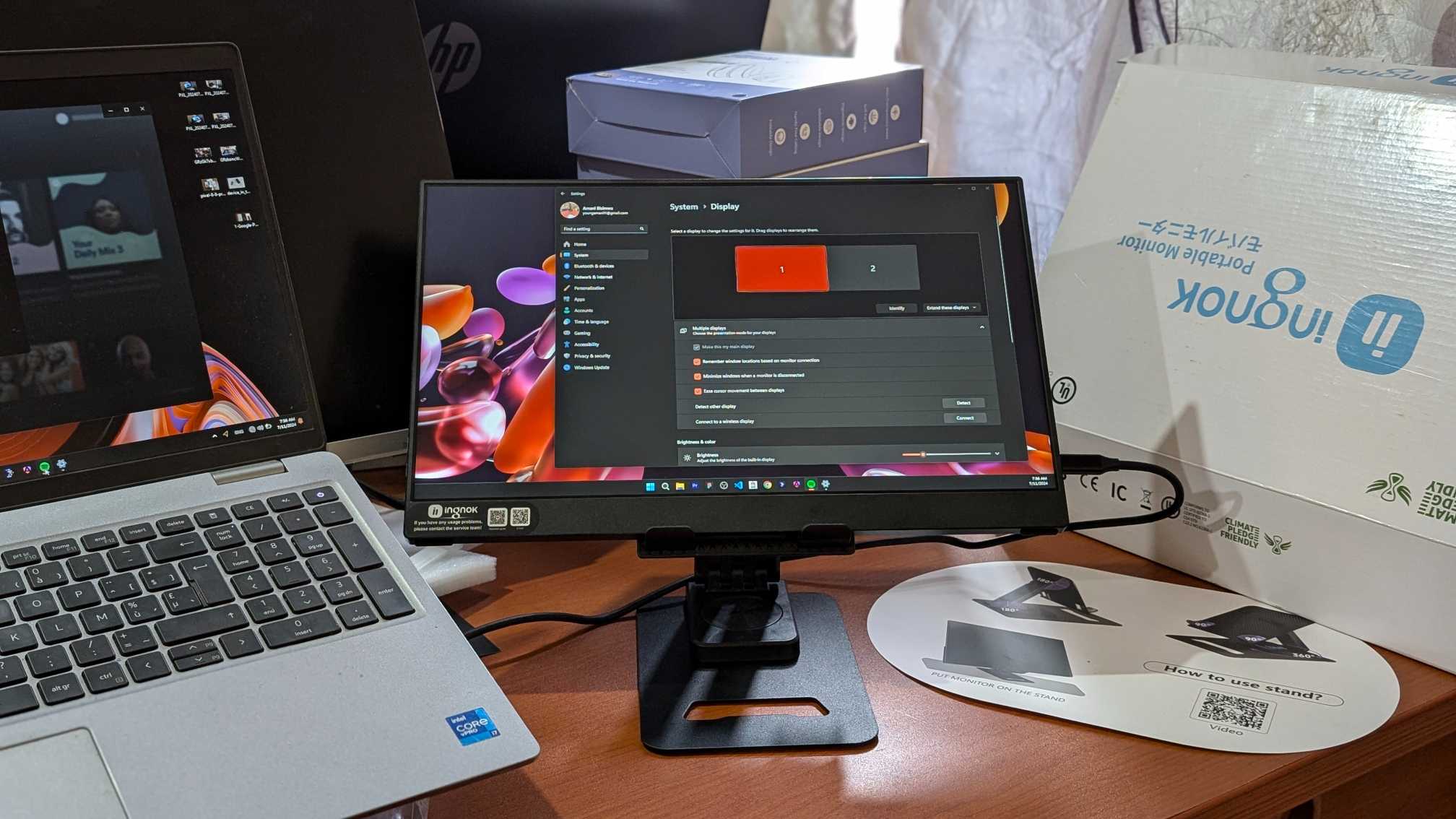 Ingnok 15.6'', Rotatif à 360°, 1920 x 1080P, pour ordinateur portable, téléphone et Mac, USB C, HDMI, écran IPS ultra fin avec coque intelligente et haut-parleurs, HDR Plug&Play Moniteur portable externe (15,6'' 1920 x 1080P) pour ordinateur portable, téléphone et Mac, USB C, HDMI, écran IPS ultra fin avec coque intelligente et haut-parleurs, HDR Plug&Play